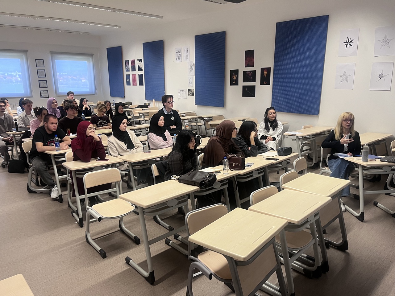 Held in a classroom setting, the session created a space for direct engagement with the artist and his work. The conversation was led by Asst. Prof. Dr. Nadira Puškar Mustafić from the English Language and Literature (ELIT) study program and a member of the Art Gallery Committee.