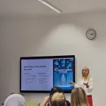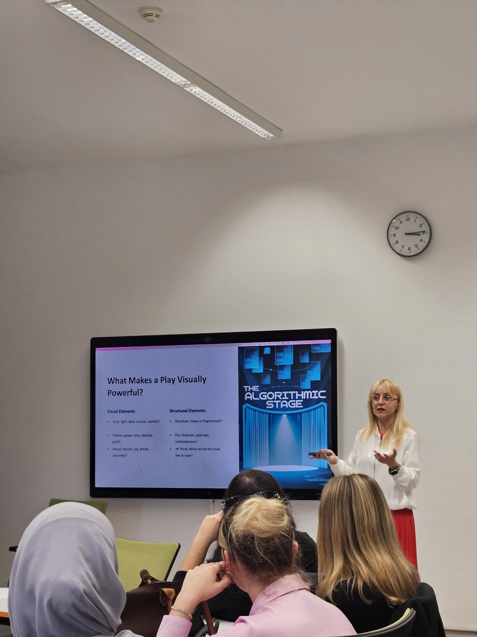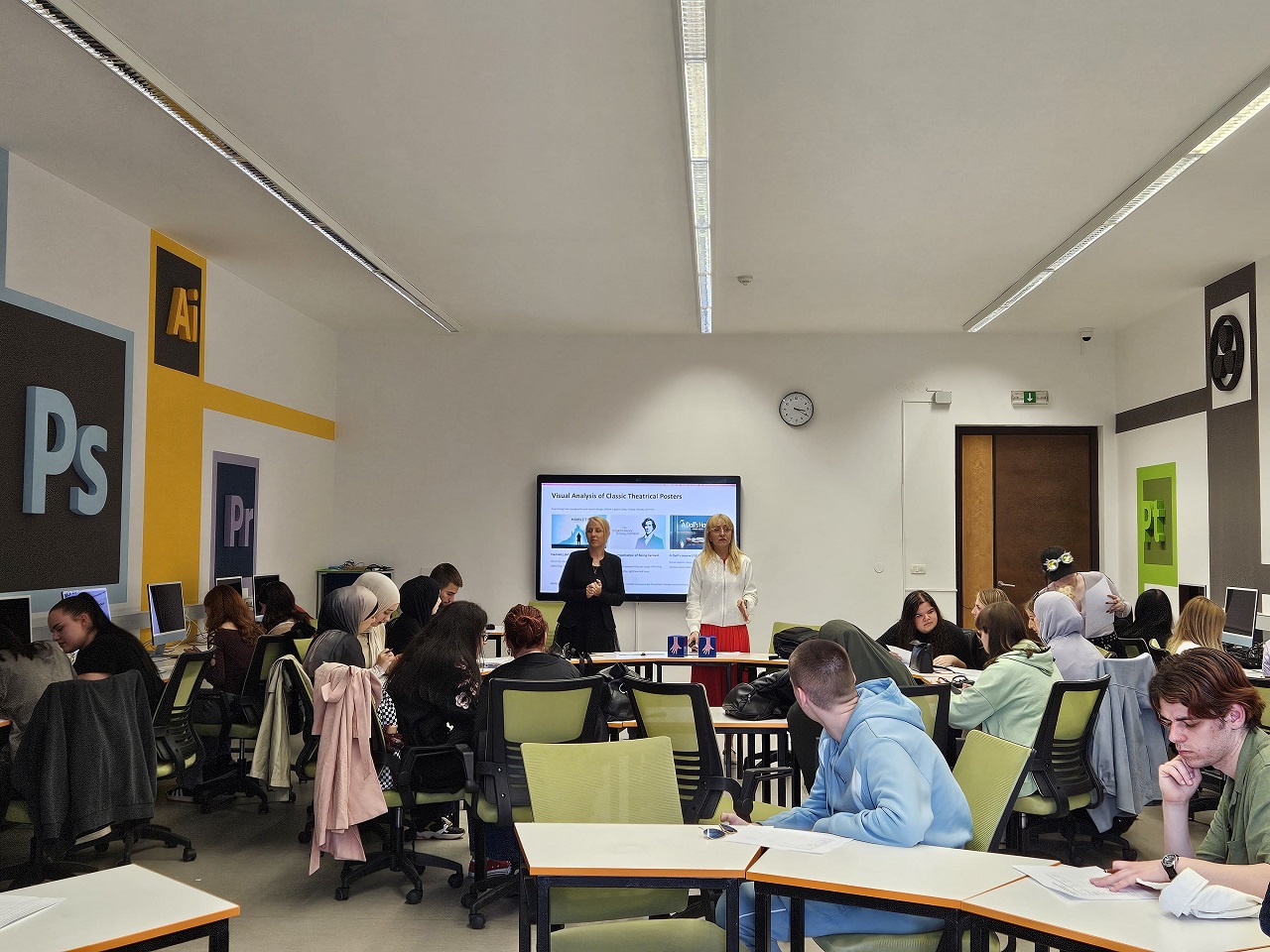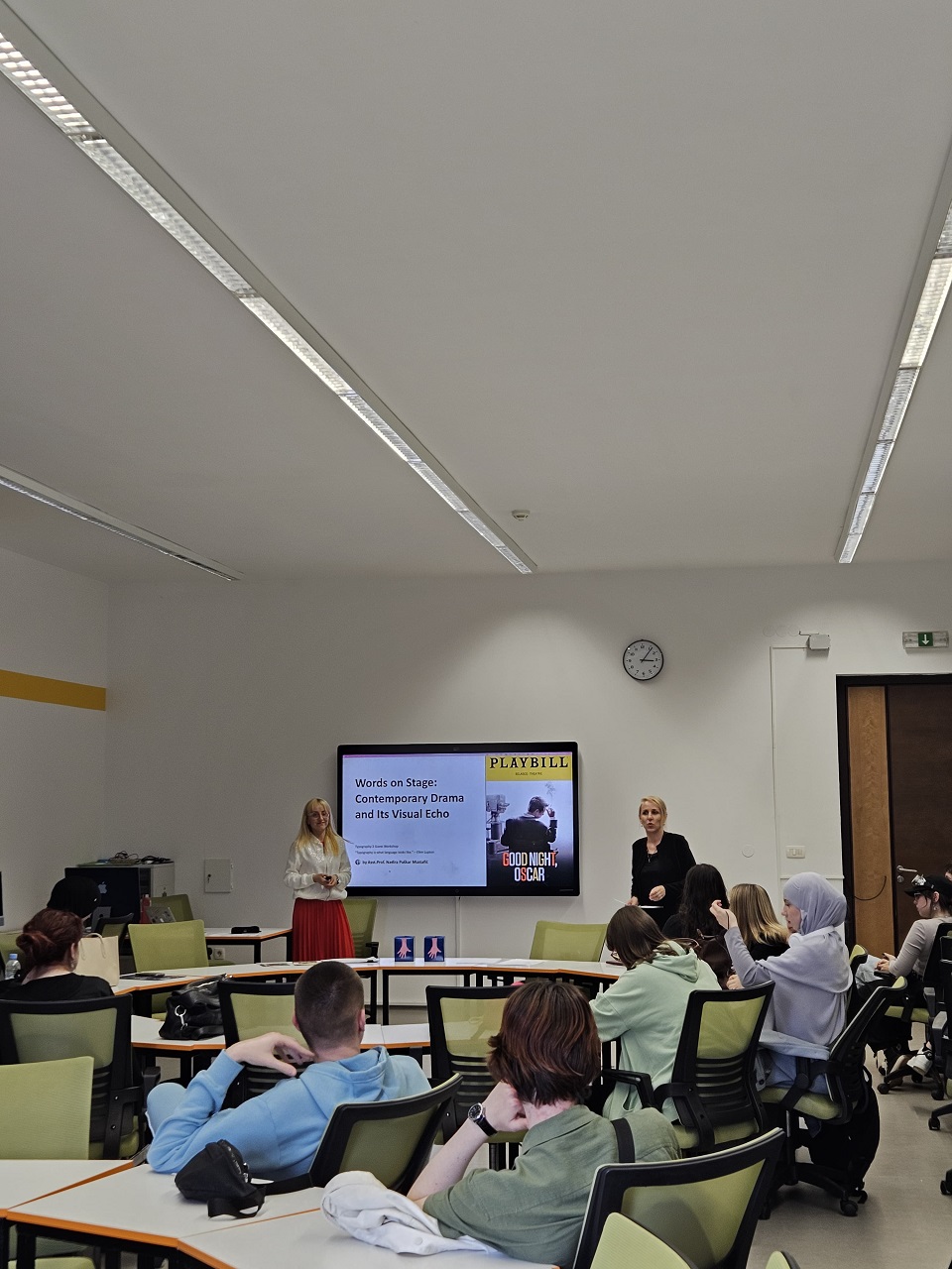Kao profesor na predmetu Contemporary Drama na studijskom programu Engleski jezik i književnost (ELIT), dr. Puškar-Mustafić podijelila je zanimljive uvide o tome kako se teatarski narativi mogu interpretirati i obogatiti kroz vizualni i tipografski dizajn. Njeno inspirativno predavanje naglasilo je sinergiju između književnosti i dizajna, ističući da tipografija može djelovati kao oblik izvedbe na stranici.