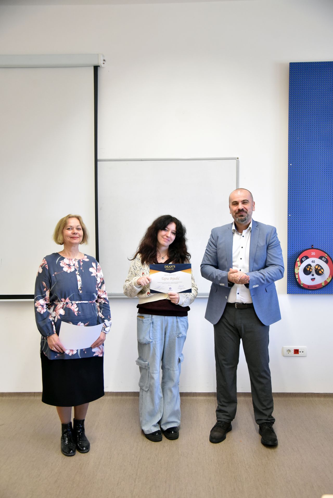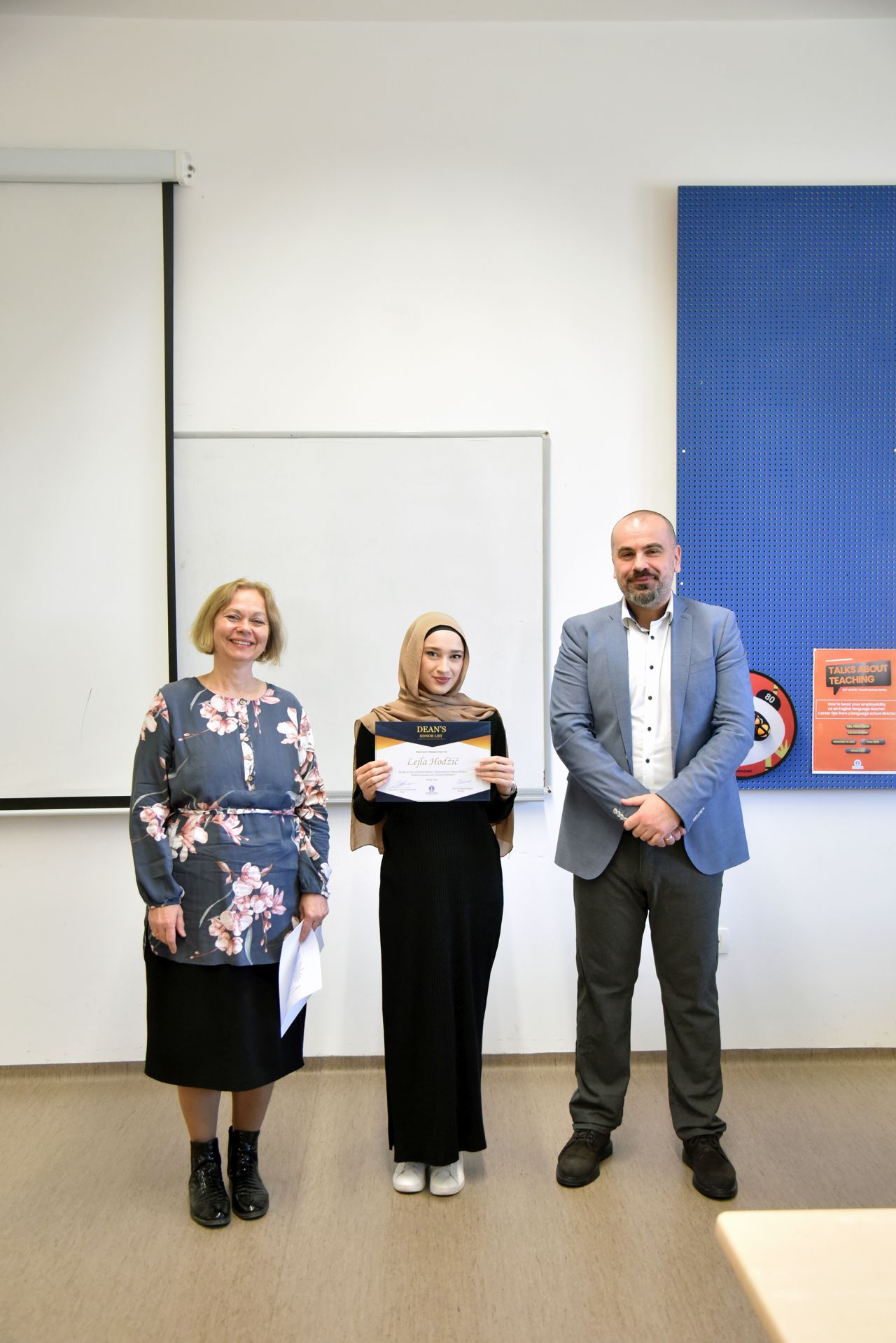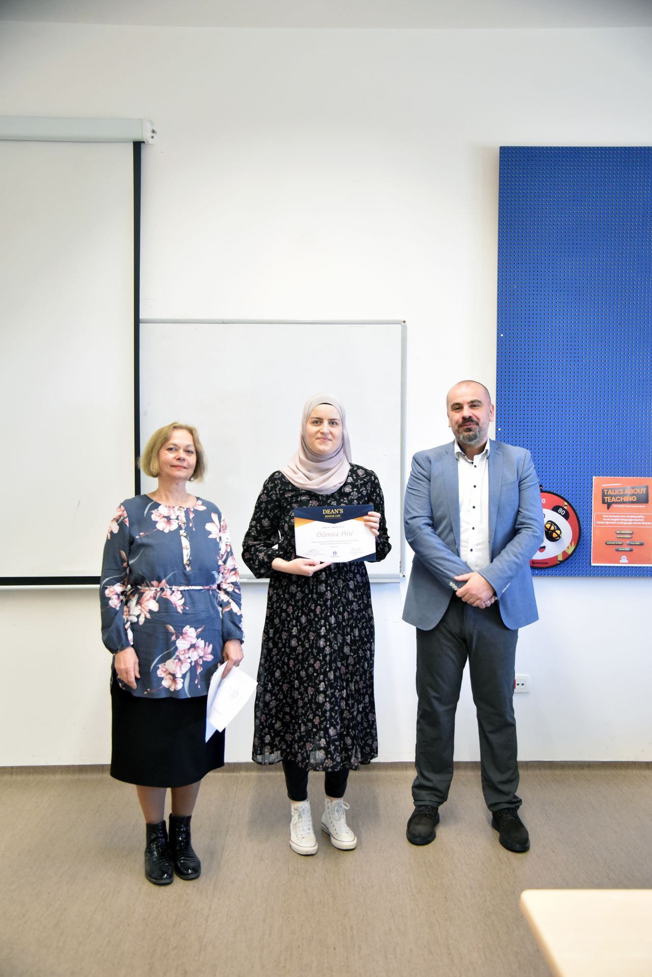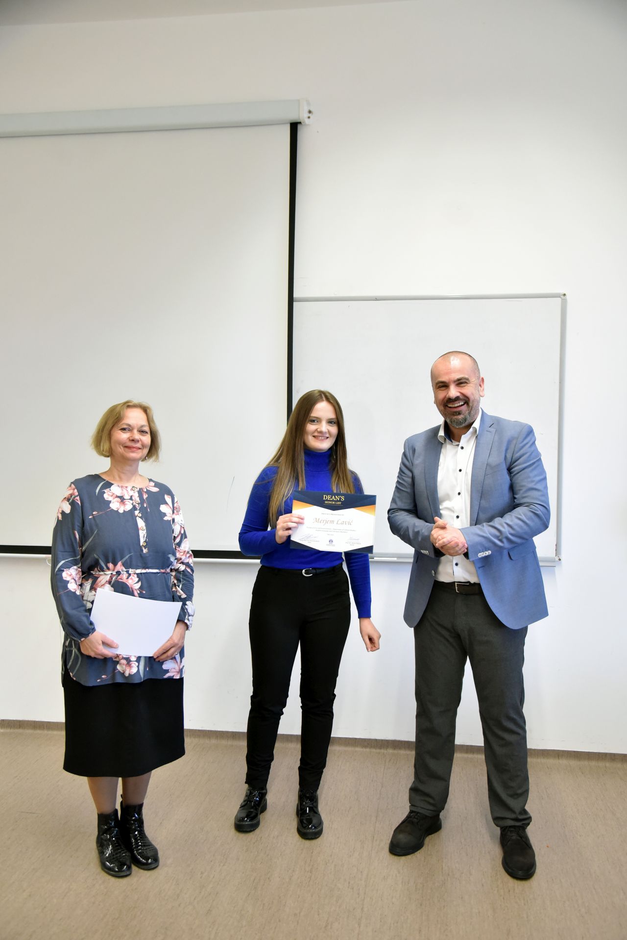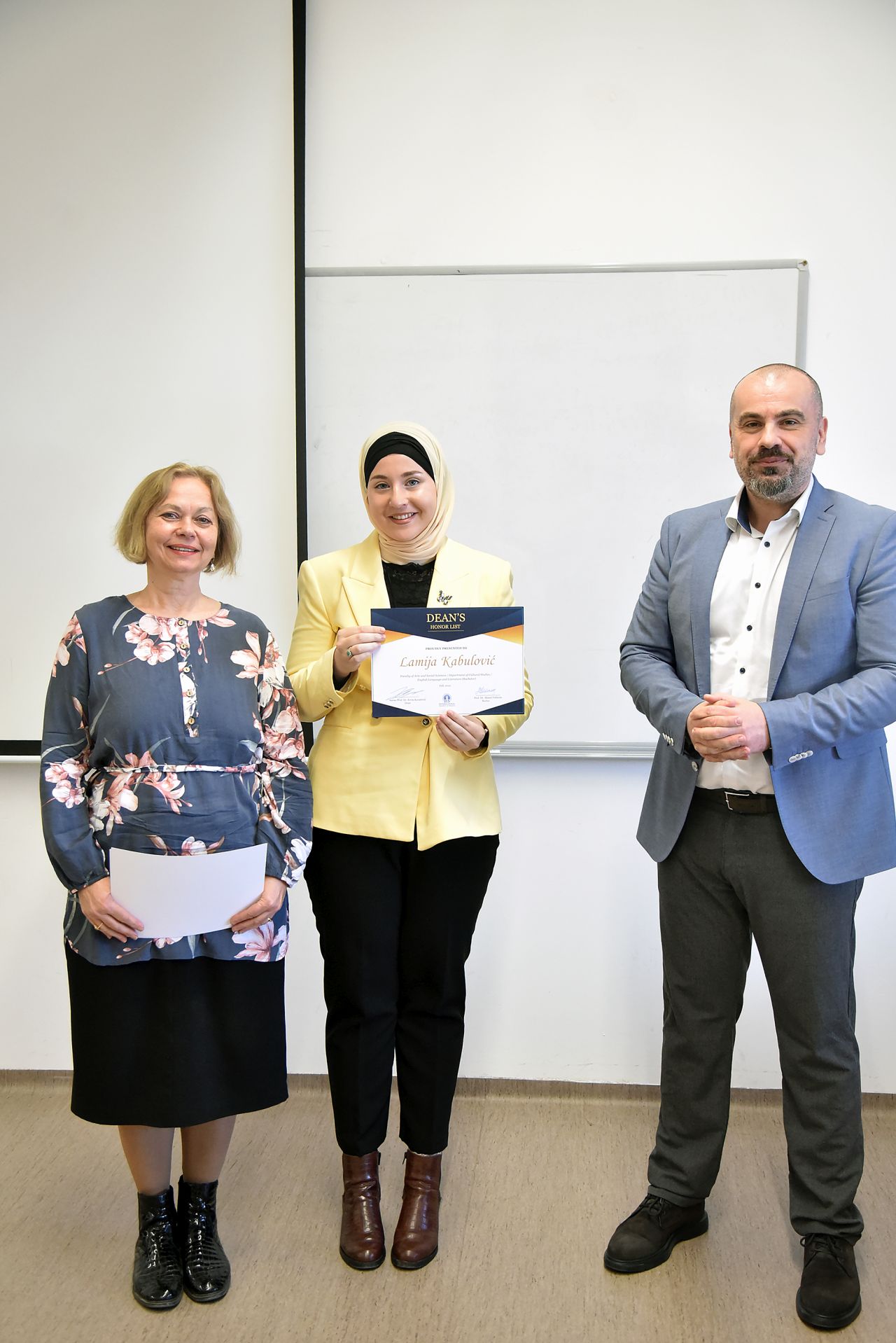On Tuesday, March 5, 2024, thirteen students, who have been selected to be on FASS Dean's Honour list, received certificates for their excellent results during Fall 2022 and/or Spring 2023 semesters. They are Merjem Lavić, Lamija Kabulović, Tarik Kosovac, Benjamin Ahmedbegović, Tajra Bijedić, Ahmed Pejković, Faruk Arnautović, Lamija Ramović, Ilma Dizdarević, Lejla Hodžić, Dženana Kabulović, Dženita Pirić and Emela Fazlić.