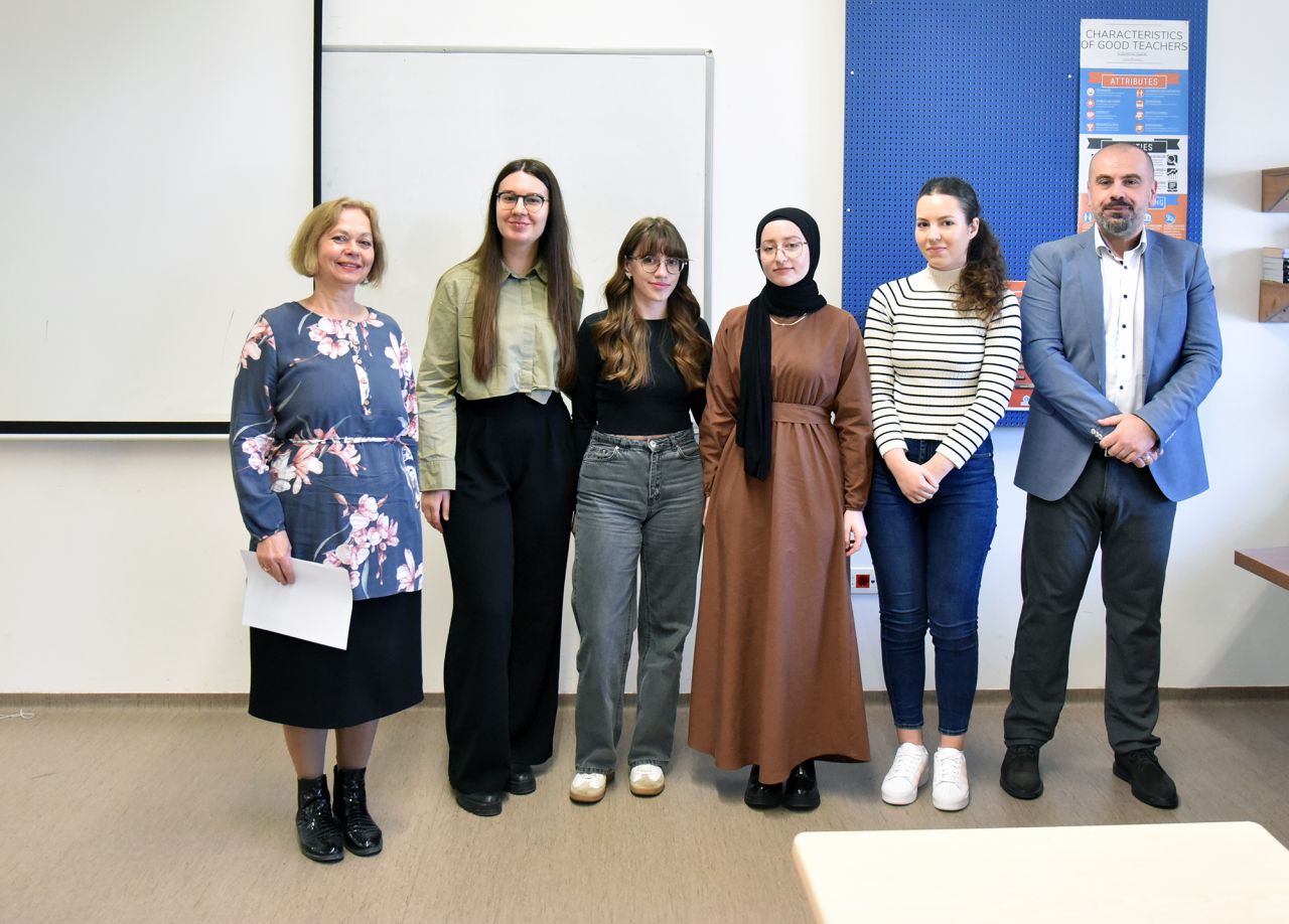 Their dedication, hard work and achievements have been commended by Assistant Professor Dr. Vesna Suljić, the English Language and Literature (ELIT) Program Coordinator, by Associate Professor Dr. Ervin Kovačević, the Dean of Faculty of Arts and Social Sciences (FASS), and ELIT teaching staff as well. Among students present at the small ceremony, there were also the students from ELIT study program whose results have been recognized as outstanding and so they have been listed for the Rector's award. These students are Dženana Kabulović, Ajla Avdić, Emela Fazlić, Lamija Bećirović, Lejla Hamzakadić and Emina Palavra.