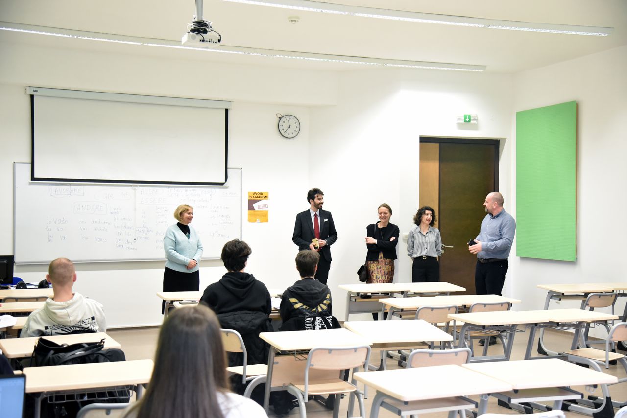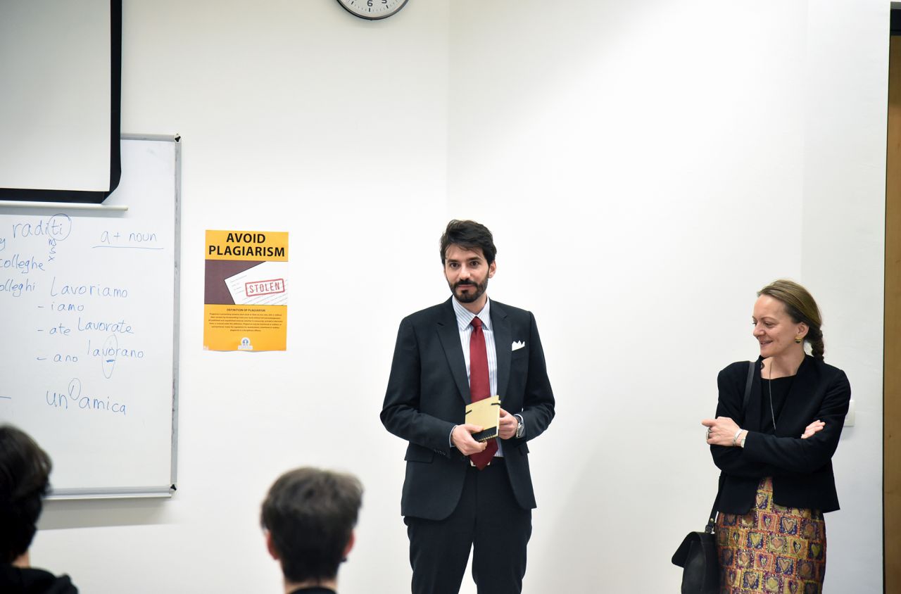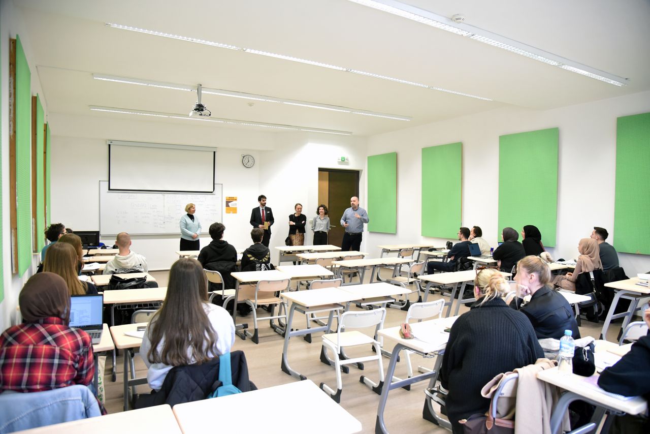 Mr. Riccardo Righelli, Head of the Cultural Affairs Office at the Italian Embassy, along with Mrs. Amela Zec Filipović, Representative of the Cultural Affairs Office, visited the University on March 7, 2024, to experience the Campus ambiance and engage with students enrolled in the Spoken Italian I course.